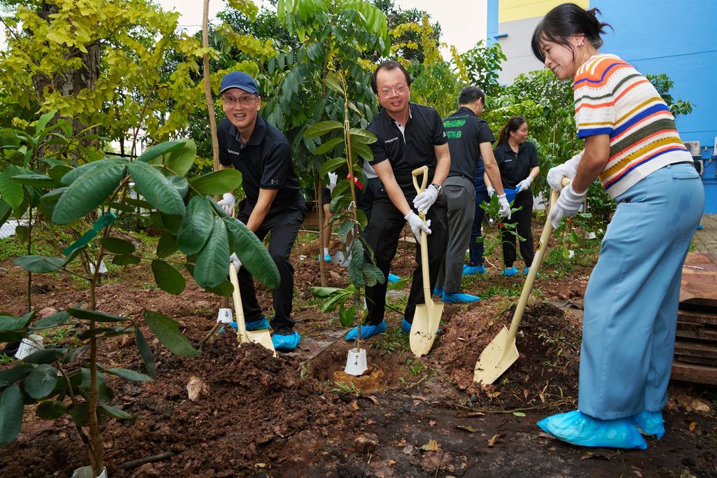 In efforts to green its surrounding areas, Mapletree expanded its tree planting initiatives by partnering with Kent Ridge Secondary School (KRSS), a local school located in close proximity to Mapletree Business City. A total of 300 trees were planted at KRSS, creating a ‘mini forest’ to enhance biodiversity and ecological resilience. Close to 50 tree species were introduced, with four of them identified as endangered, one of which being the native Changi tree. The reintroduction of the Changi tree seeks to contribute to the continued existence of endangered species and re-establish vital habitats for local wildlife, further enhanced by the school’s location as a midpoint between two parks – Clementi Woods Park and West Coast Park. The planting of these trees transformed adjacent plots into a green corridor, creating a safe passage for wildlife moving across the neighbouring parks. The event saw 81 Mapletree employees, 90 KRSS students and teachers collaborating to plant trees at the back of the school, creating a space for authentic learning experience for students in nature’s classroom. Through restoring natural connections, Mapletree hopes to foster a more resilient urban ecosystem where both people and nature can coexist harmoniously.